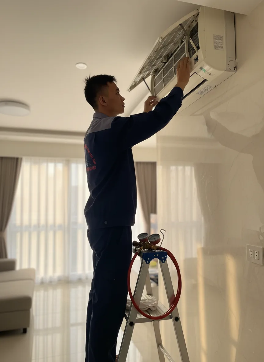 Bảo dưỡng điều hòa: Để đảm bảo hoạt động ổn định và tiết kiệm năng lượng, chúng tôi cung cấp dịch vụ bảo dưỡng định kỳ cho các thiết bị điều hòa, giúp kéo dài tuổi thọ và tăng hiệu suất làm việc của chúng.